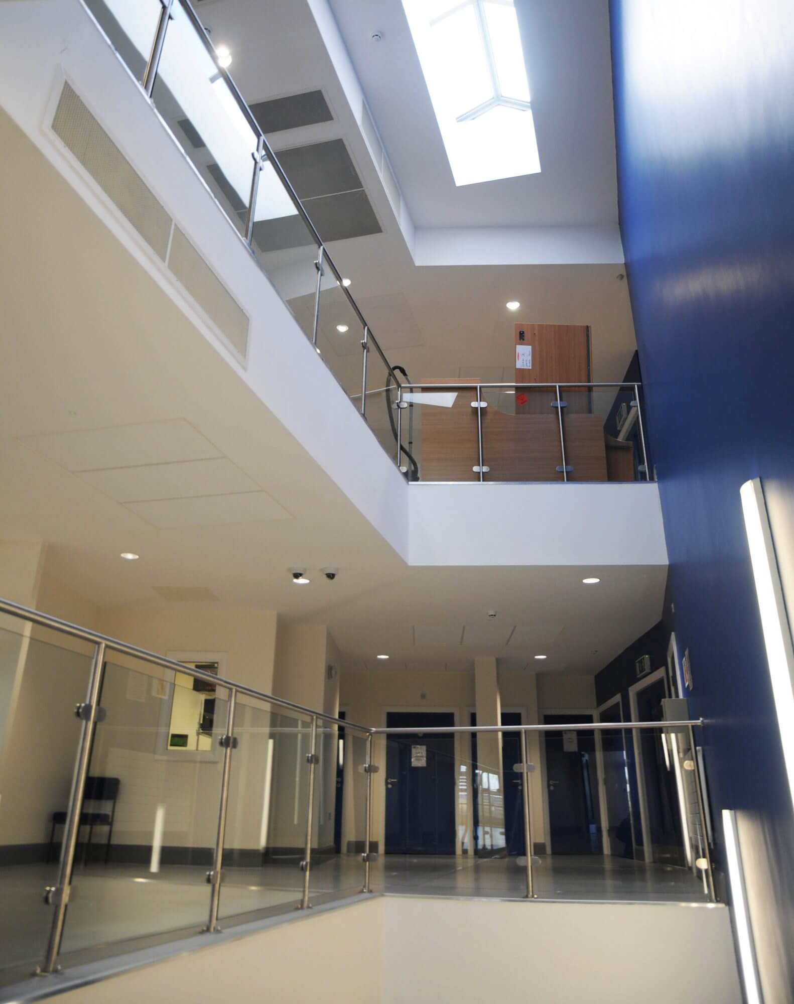 - Extensive natural ventilation system utilising low-level inlets, openable windows, and rooftop terminals to optimise air flow