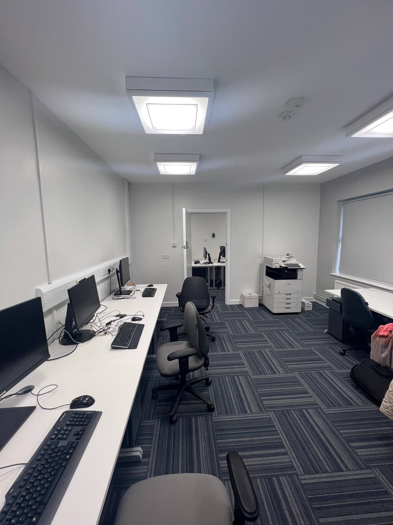 A dated Greater Manchester Mental Health facility has been given new life as a modern medical facility, combining comfortable office space with purpose-built treatment areas. Our team delivered comprehensive mechanical and electrical design services to RIBA Stages 2 to 6 to create a safe and comfortable environment that serves both staff and patients effectively. The revitalised building now features distinct zones: one half accommodates office space with staff facilities, whilst the other provides well-equipped treatment and assessment rooms.