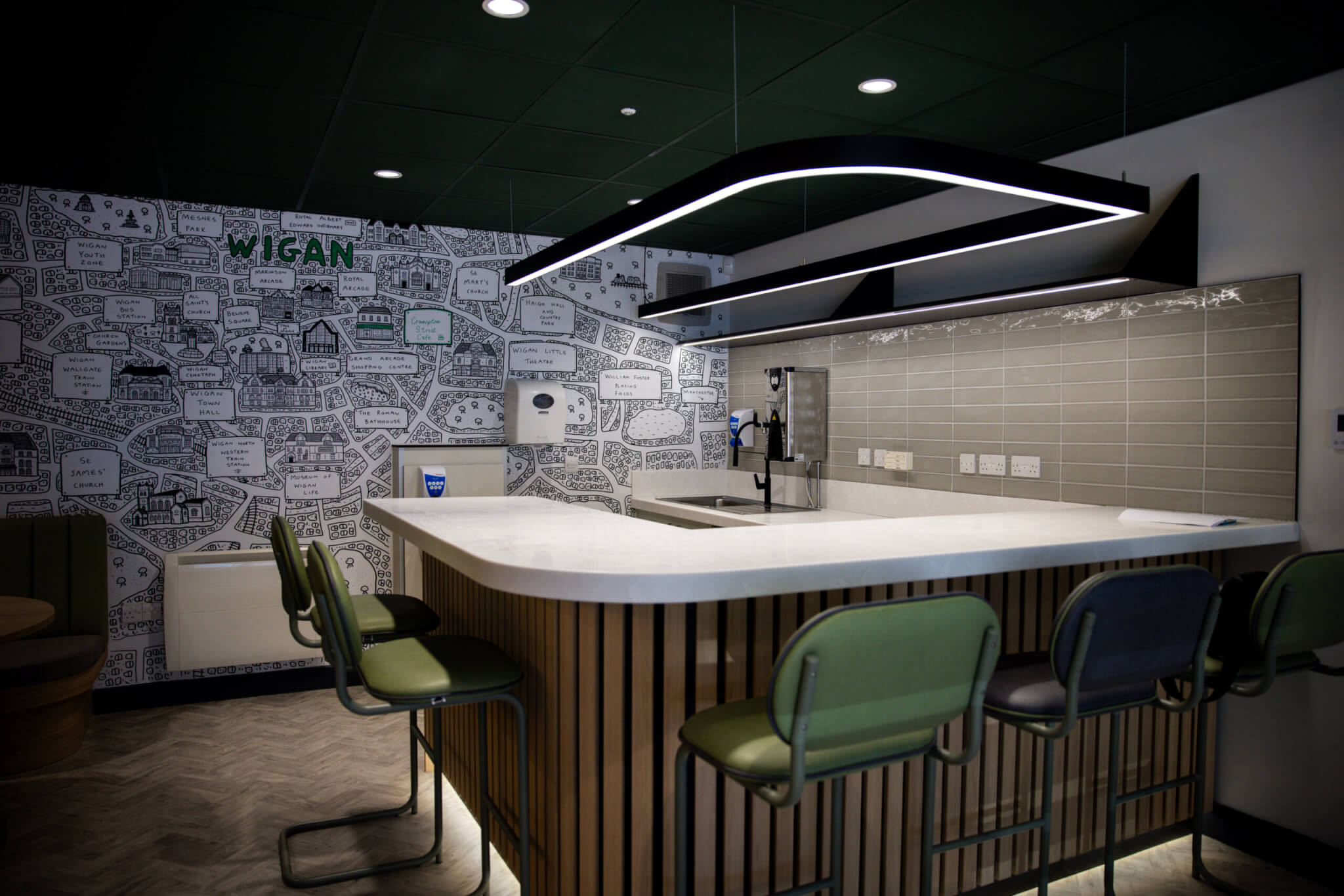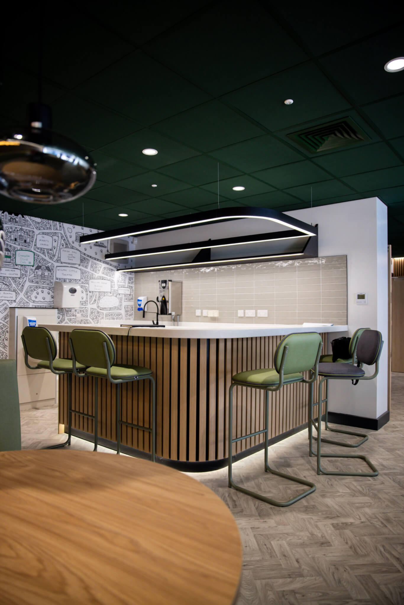 A local mental health support service in Wigan required a transformation of an existing office space into a welcoming café environment for individuals experiencing crisis. Our mechanical and electrical engineering team supported the design team with technical detailed designs to create a space that balances critical safety requirements with a warm atmosphere. We worked closely with the client to overcome tight budget constraints, carefully providing design solutions that create a dignified, comfortable support space. The result is a thoughtfully engineered environment that provides both practical protection and emotional comfort for vulnerable community members.