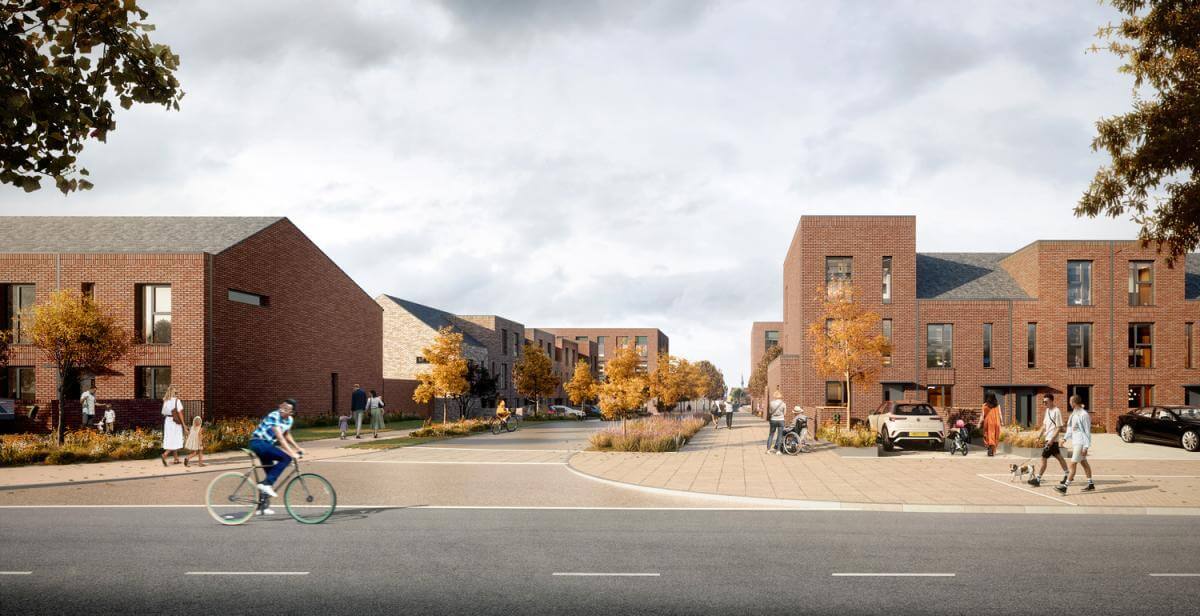 The development includes 10 acres into almost 300 new homes – including 137 houses & 137 apartments in buildings up to 5 storeys. 40% will be affordable housing managed by Derive.